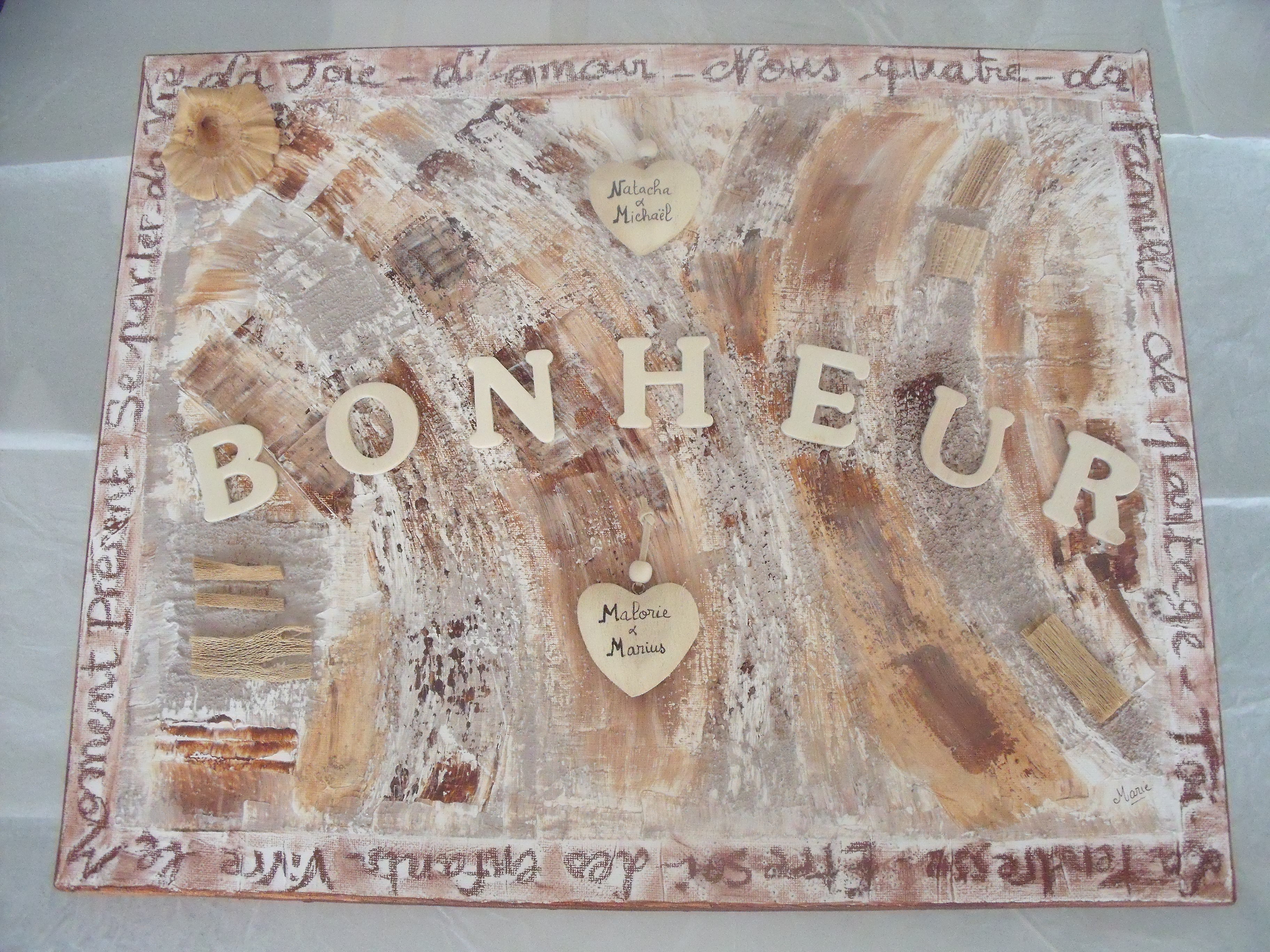 Création très personnalisée avec les écritures des prénoms et celles du contour.